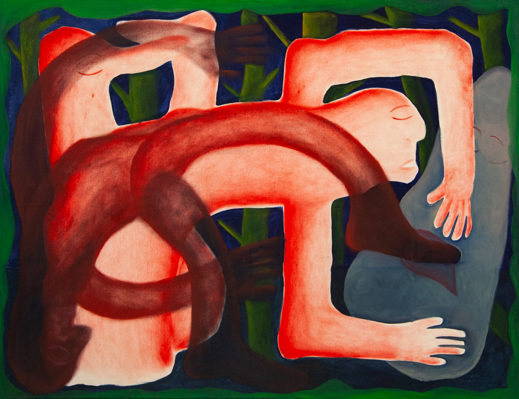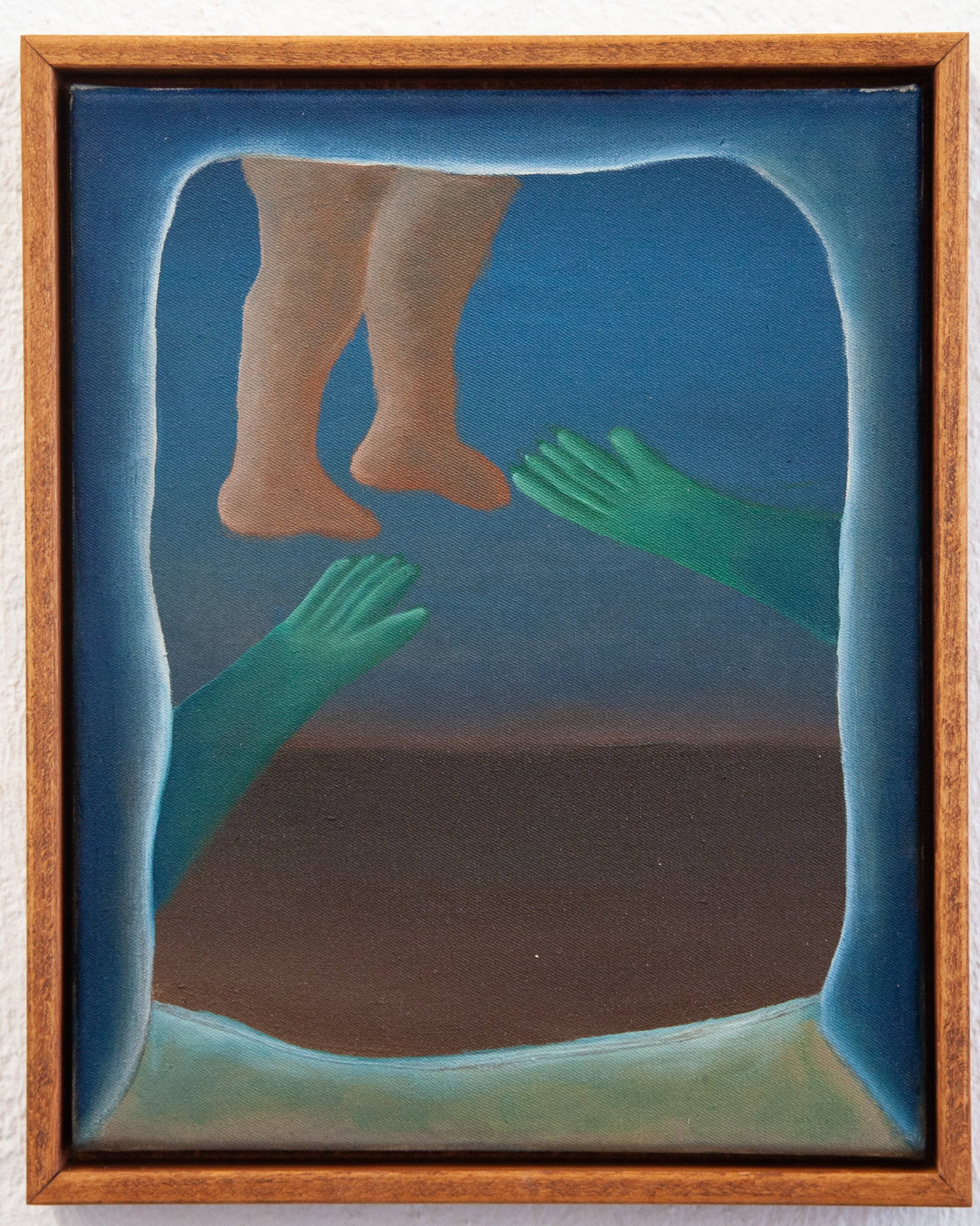 Desire, totally. Yes. Desire is very present. But at the same time the images hide themselves. For example, in that painting up there, you see the feet coming out from behind. In the background there’s the sea, something lyrical, something that makes you think: “I miss the sea.” But the body isn’t there. You only see the feet. What does that mean?