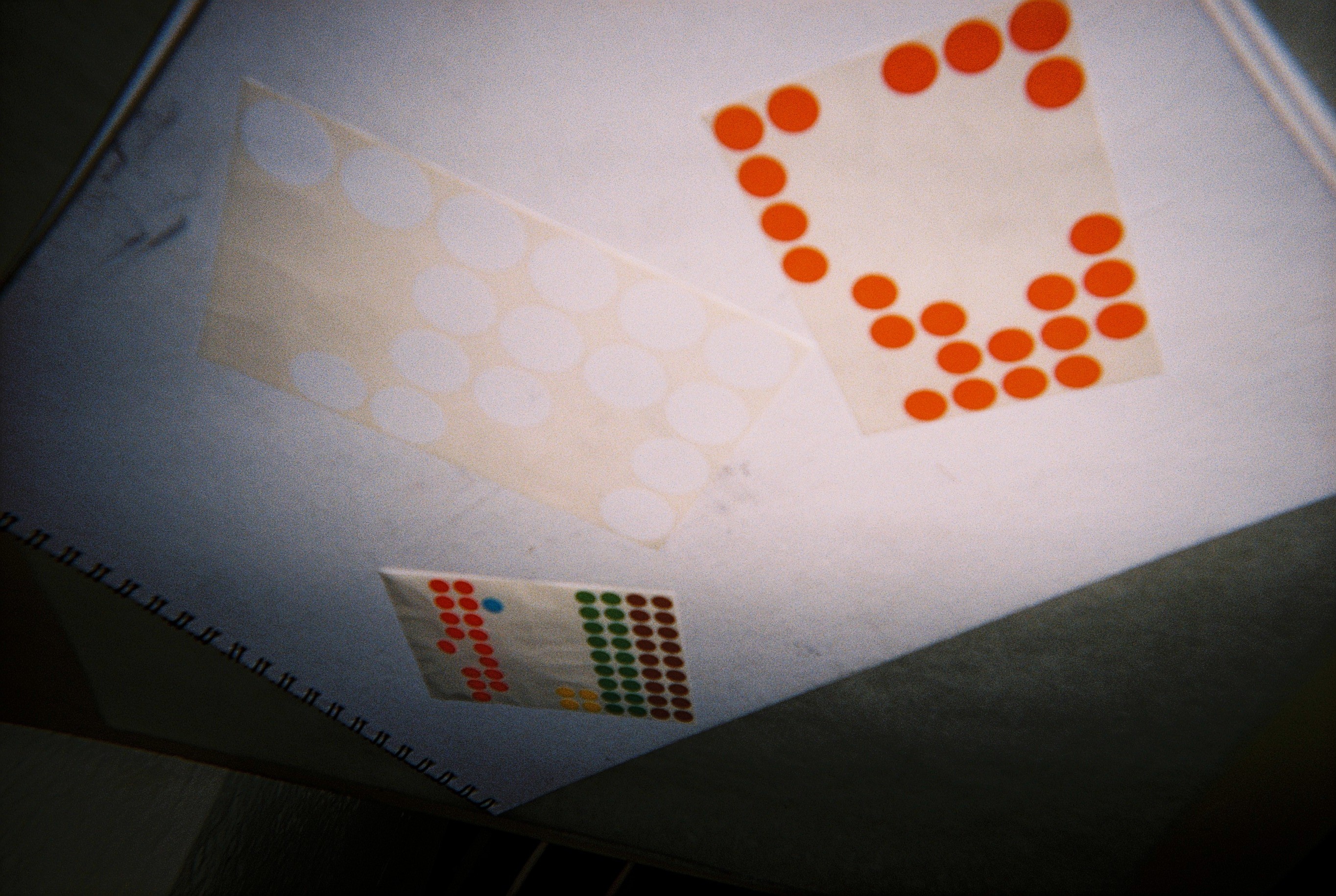 This contrast has to do with bringing two seemingly distinct modes of working into dialogue. One is highly premeditated—the placement of the stickers, which later become dots through their removal. The other is the dragging and layering of charcoal, which is far more improvised, as the material lends itself to accident. In the encounter between these two ways of acting, an ambiguity and a certain intensity emerge.