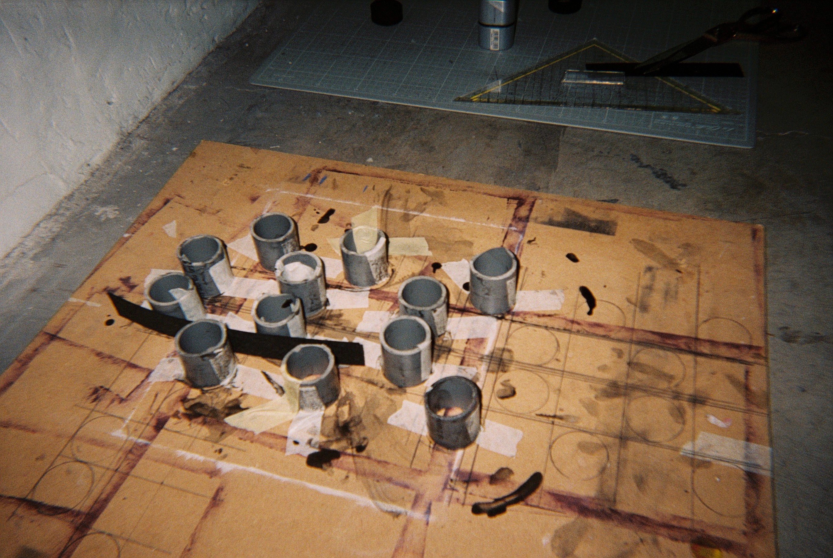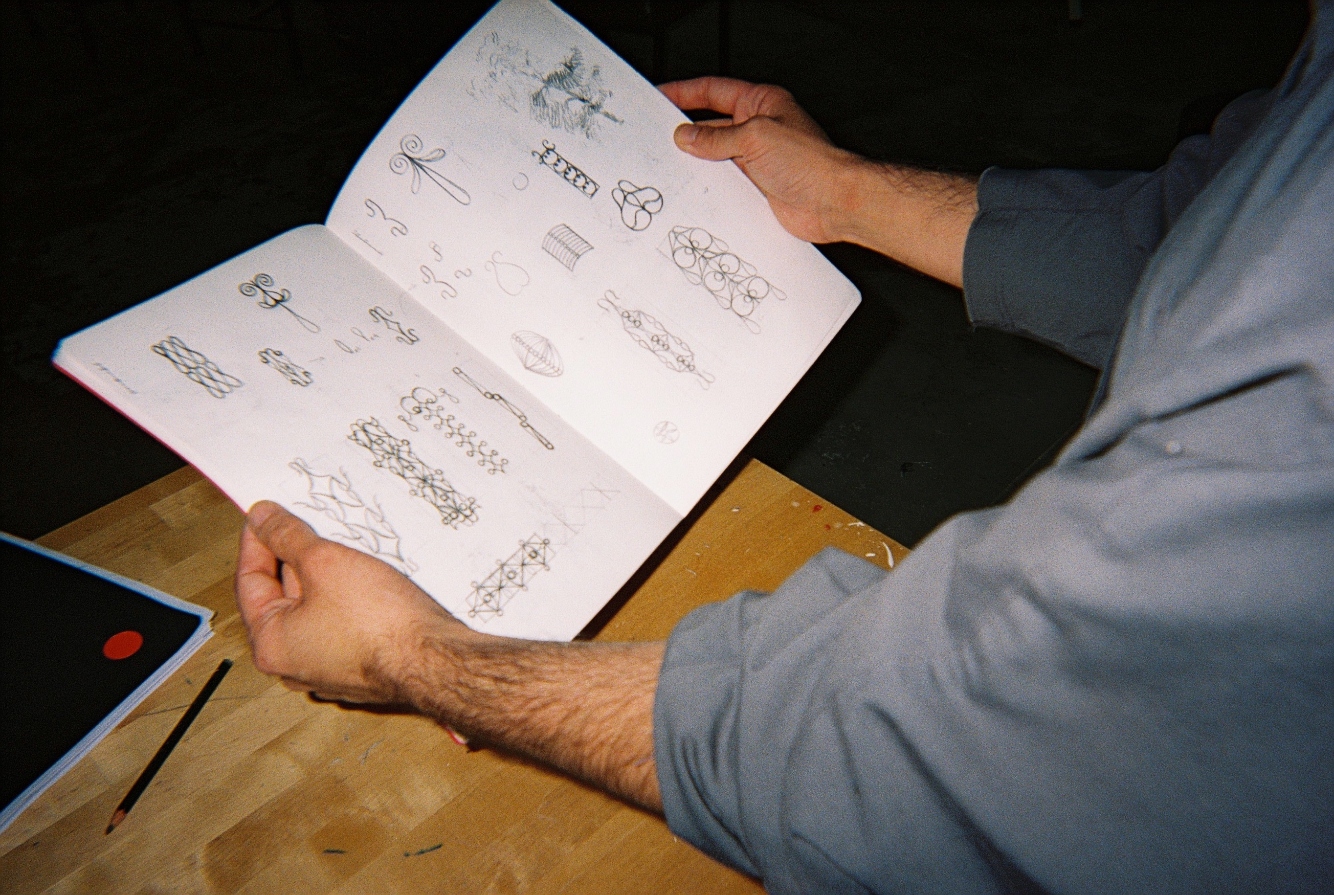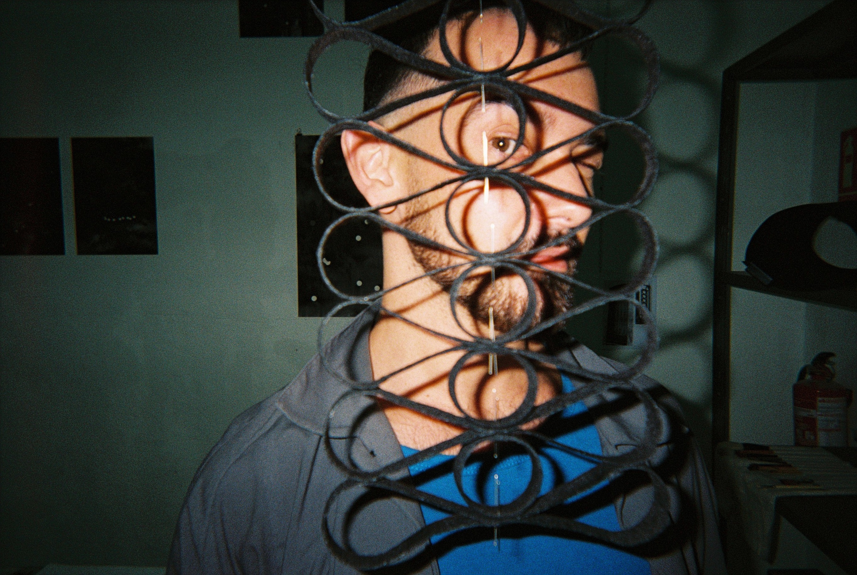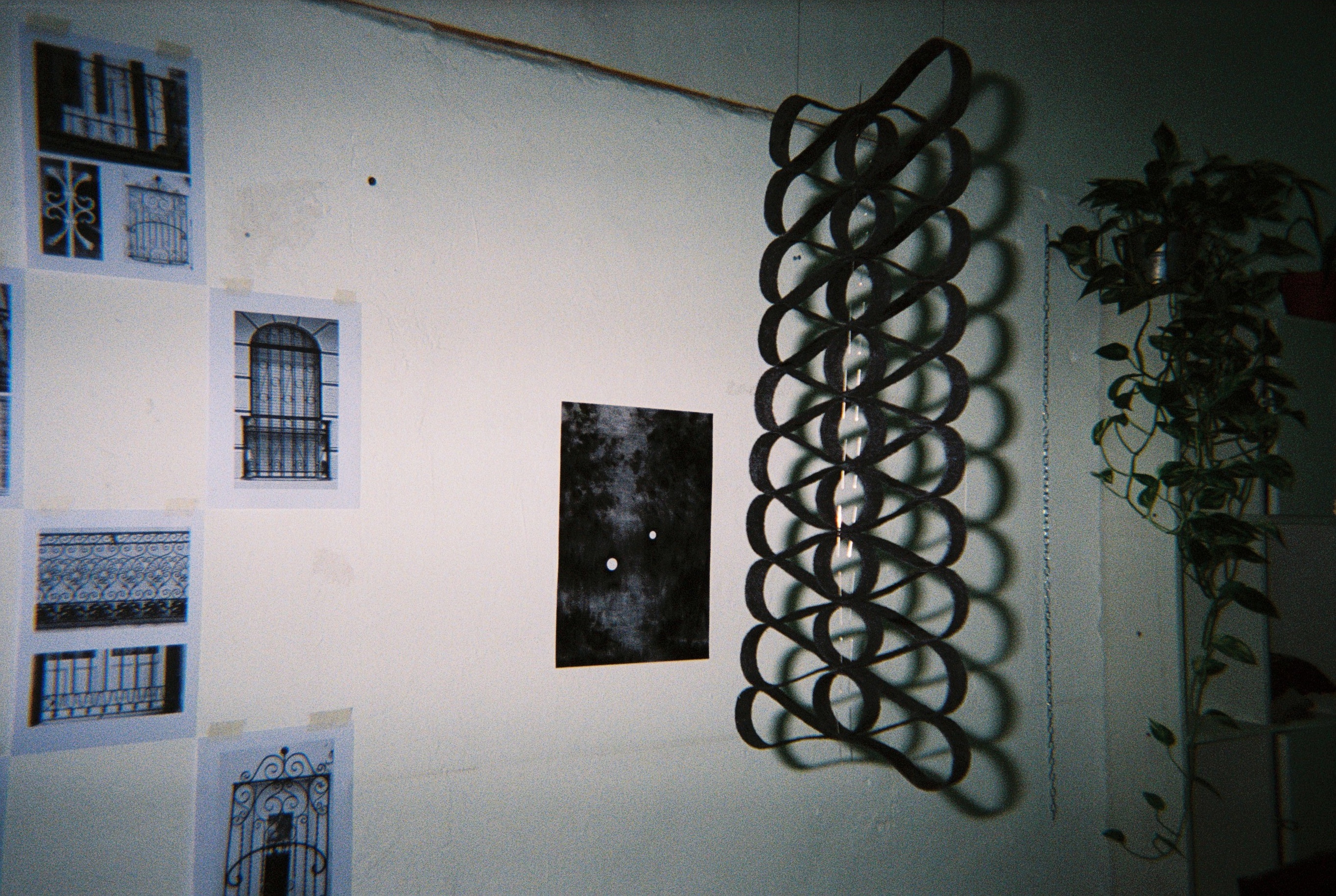 So, I am in residency at LEA, Lab of Experimental Art, in Madrid. Here, I decided to make a group of drawings and one of sculptures, in order to try to articulate two bodies of work. These sculptures or expanded drawings are related to “celosías”, which in Portuguese would correspond to reticulated screens or lattices. It is an architectural element built into houses and buildings, whose function is to separate the interior from the exterior, and which is usually made of metal, wood or brick. These are perforated or hollowed walls that allow privacy for those inside, while making it possible to look outside without being seen.