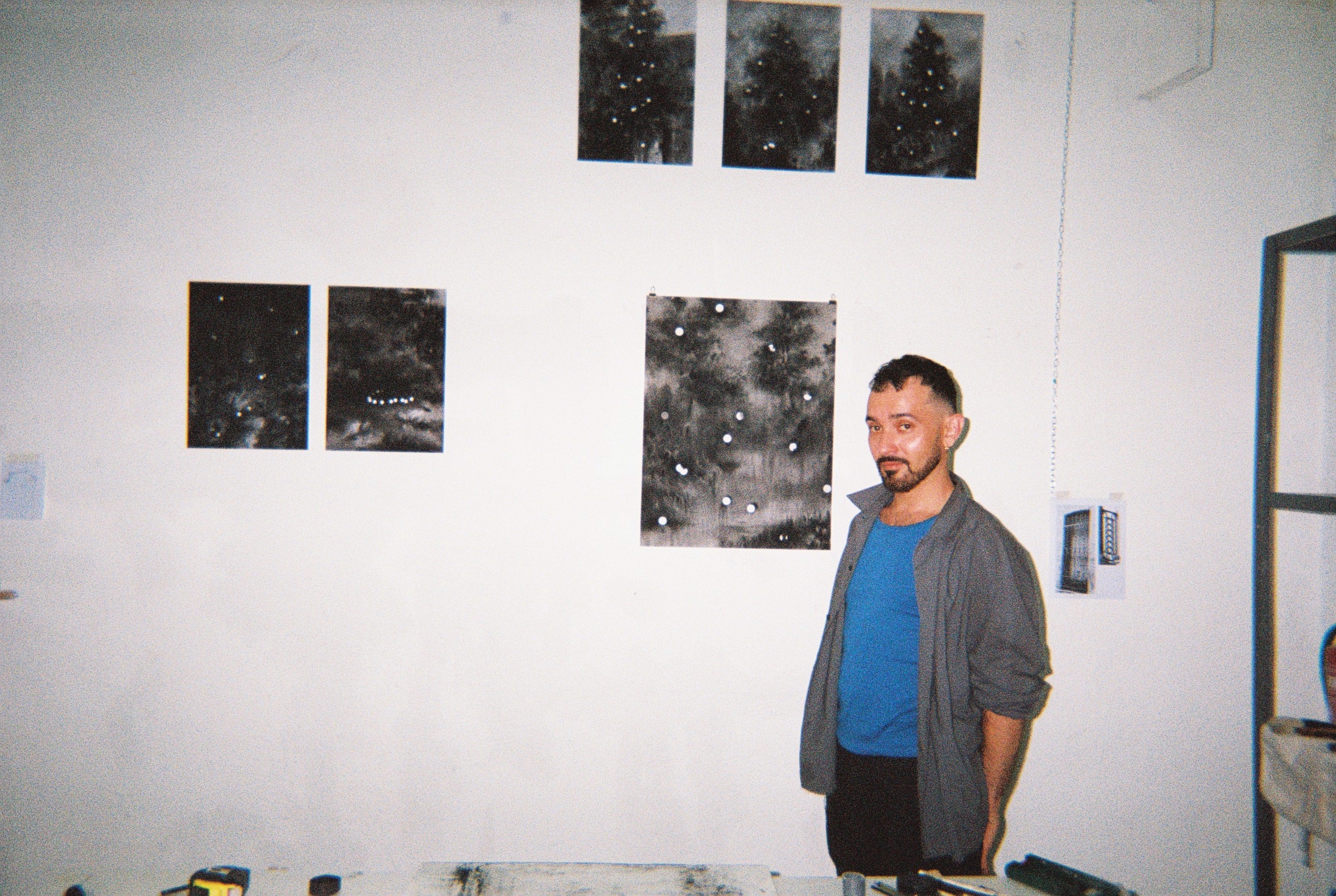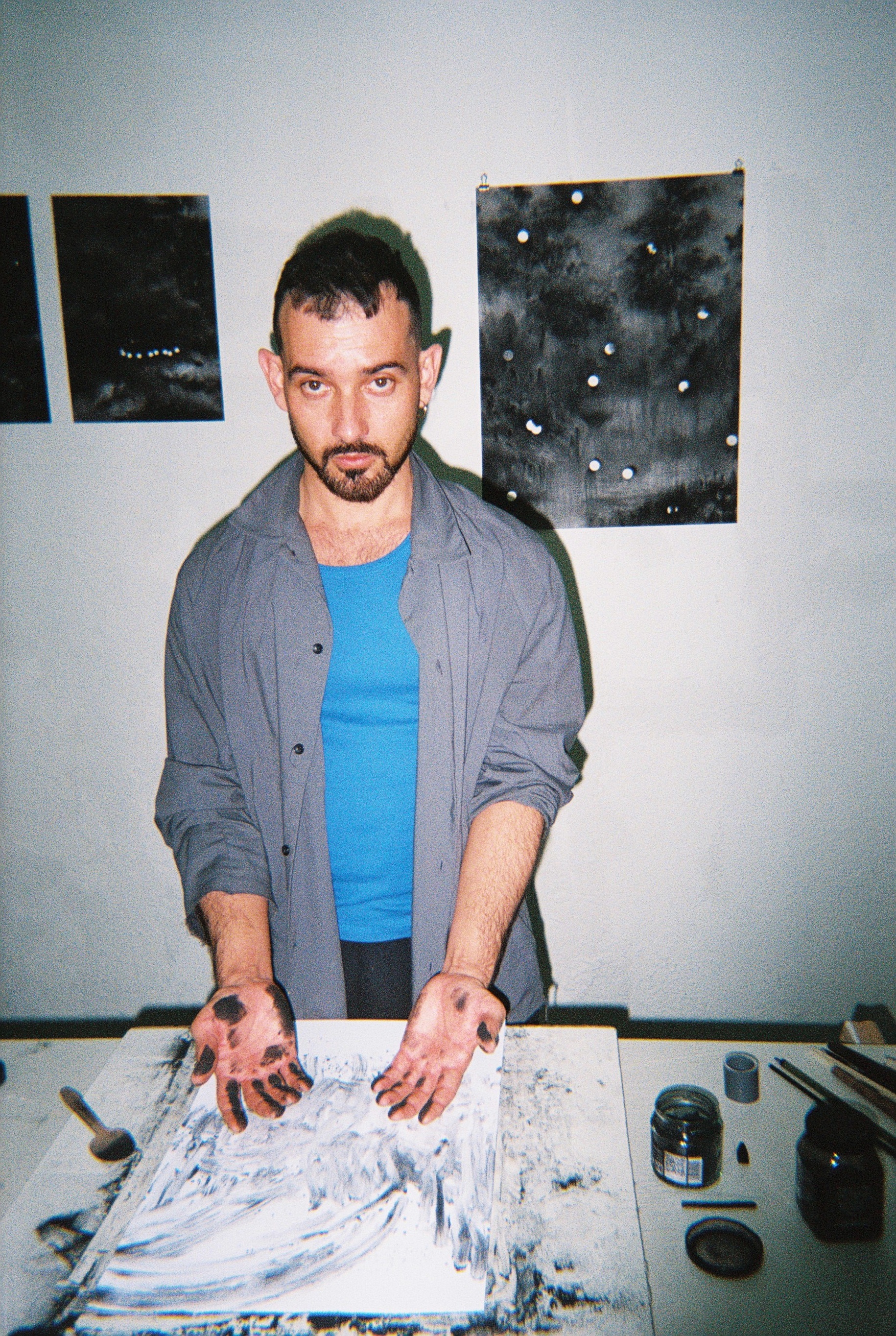 Yes, and it’s even common for me to dream about the works themselves. The behaviour of charcoal as a material seems to facilitate this dreamlike atmosphere. When charcoal is sprinkled onto the paper, it begins to “snow” over the surface. From the very first contact, it leaves marks that do not necessarily come from my hand, but from gravity itself—creating stains and traces that are already evocative from the outset.