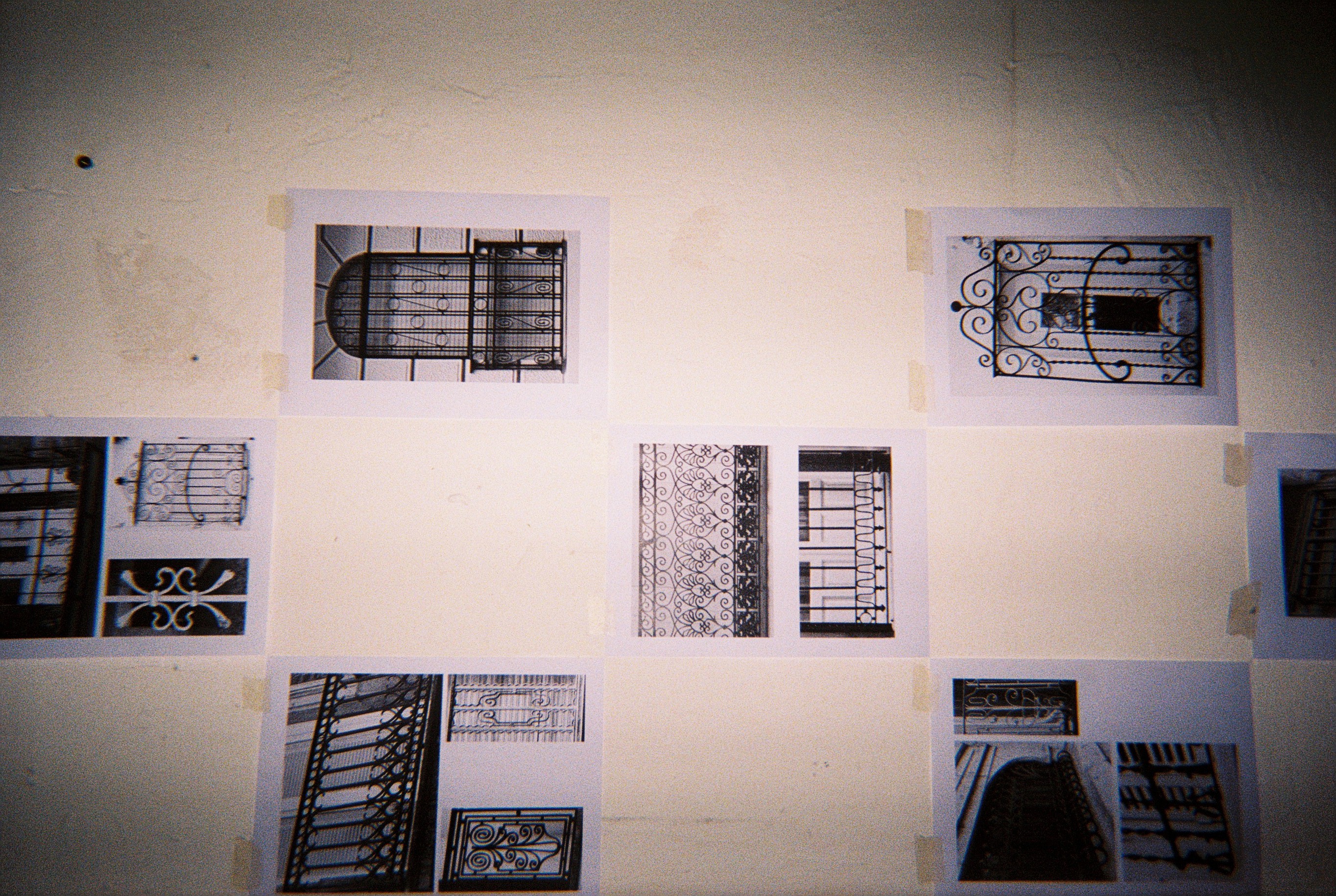 I decided to start the project by walking around the city and taking several photographs. What I found most present in the city, and which seemed very characteristic of Madrid and different from Portugal, is that most windows or doors are covered with grilles. These grilles can have more or fewer ornaments according to the period in which they were made or their historical context. They may resort to drawings or notions of rhythm and form in a more geometric sense, at times, or have motifs, drawings or more figurative shapes. They vary according to the part of the city, ranging from more simplified or minimalist compositions to much more elaborate, dense and ornamented elements.