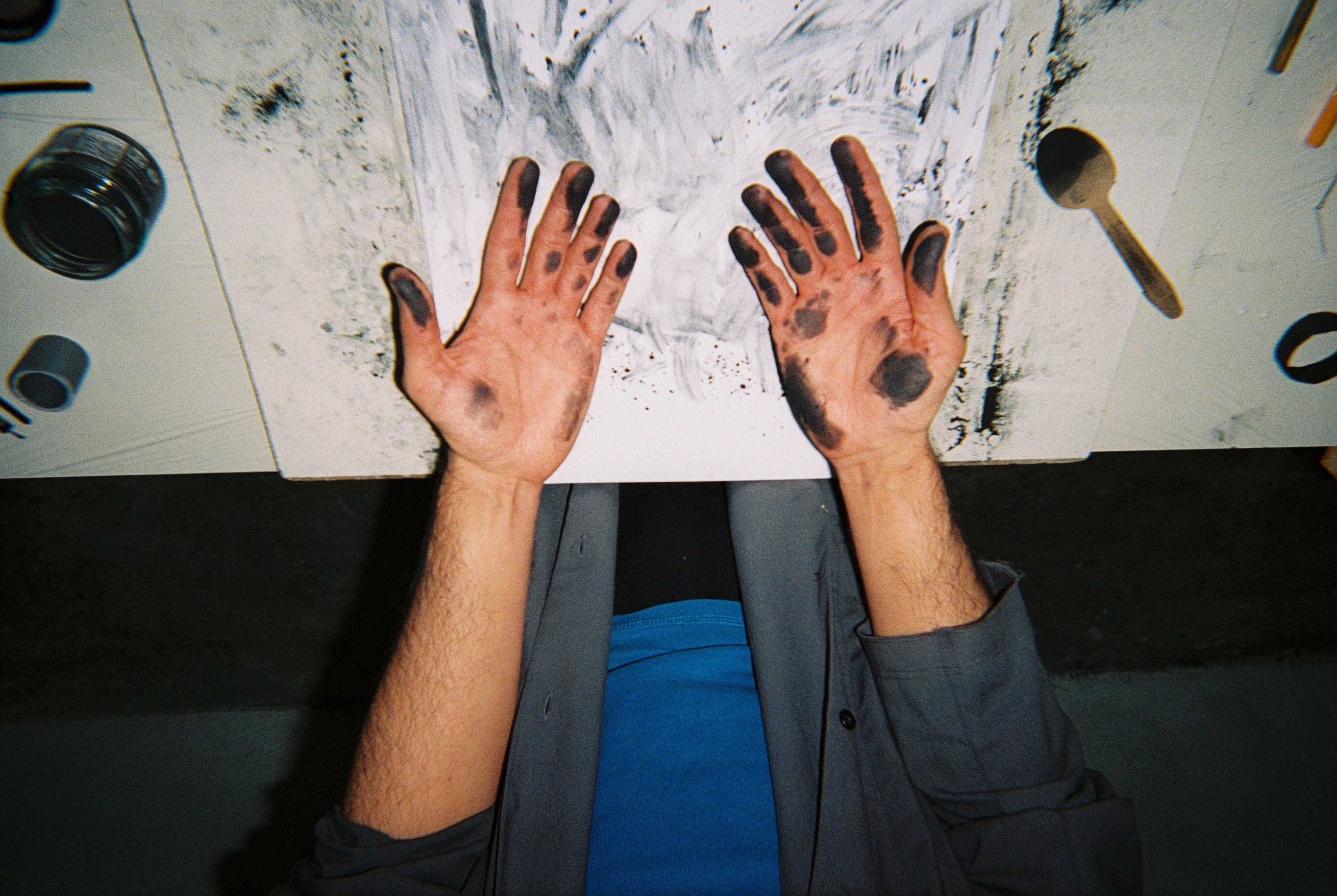 Lisbon-based artist Diogo Costa spreads a fine layer of charcoal over a blank sheet of paper and softly blends it, moving the palm of his hand over the surface until subtle black traces emerge: the foundation of his drawings, which he later completes with perfectly delineated circles. Balancing intuition and precision, the act of looking and being looked at, his work seeks to become a space where he can lose control over the material, and over himself.