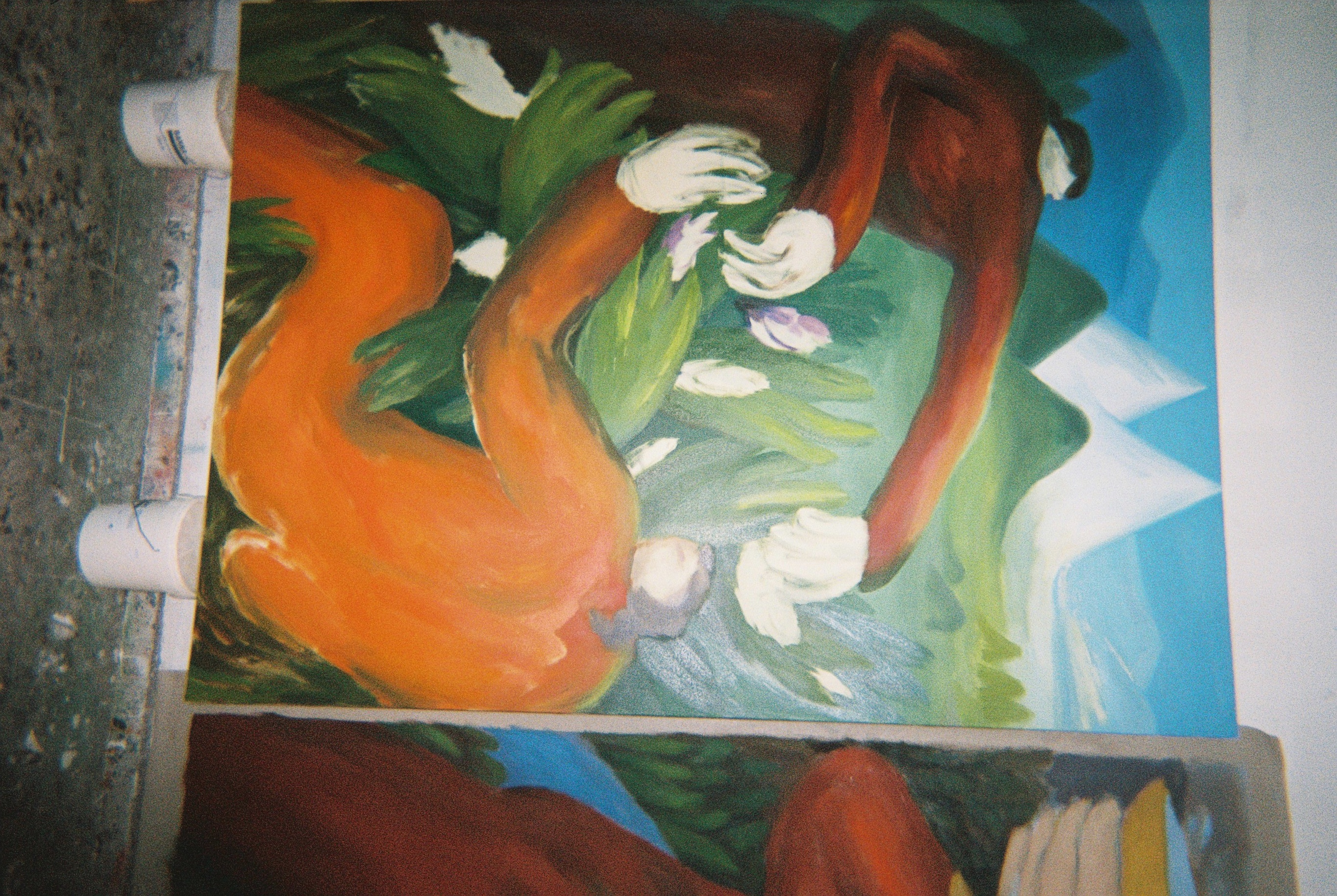 I find that very interesting, because in my work you can’t clearly tell whether the figures are male or female; they’re more androgynous, hermaphroditic. I don’t know if it’s because I don’t feel ready or simply because I don’t need it, but I don’t feel like giving my characters faces. Sometimes I think: “Should I?” But then I feel that no, I’m not as interested in who they are as in what they do, what they generate, the movement they produce within the painting.