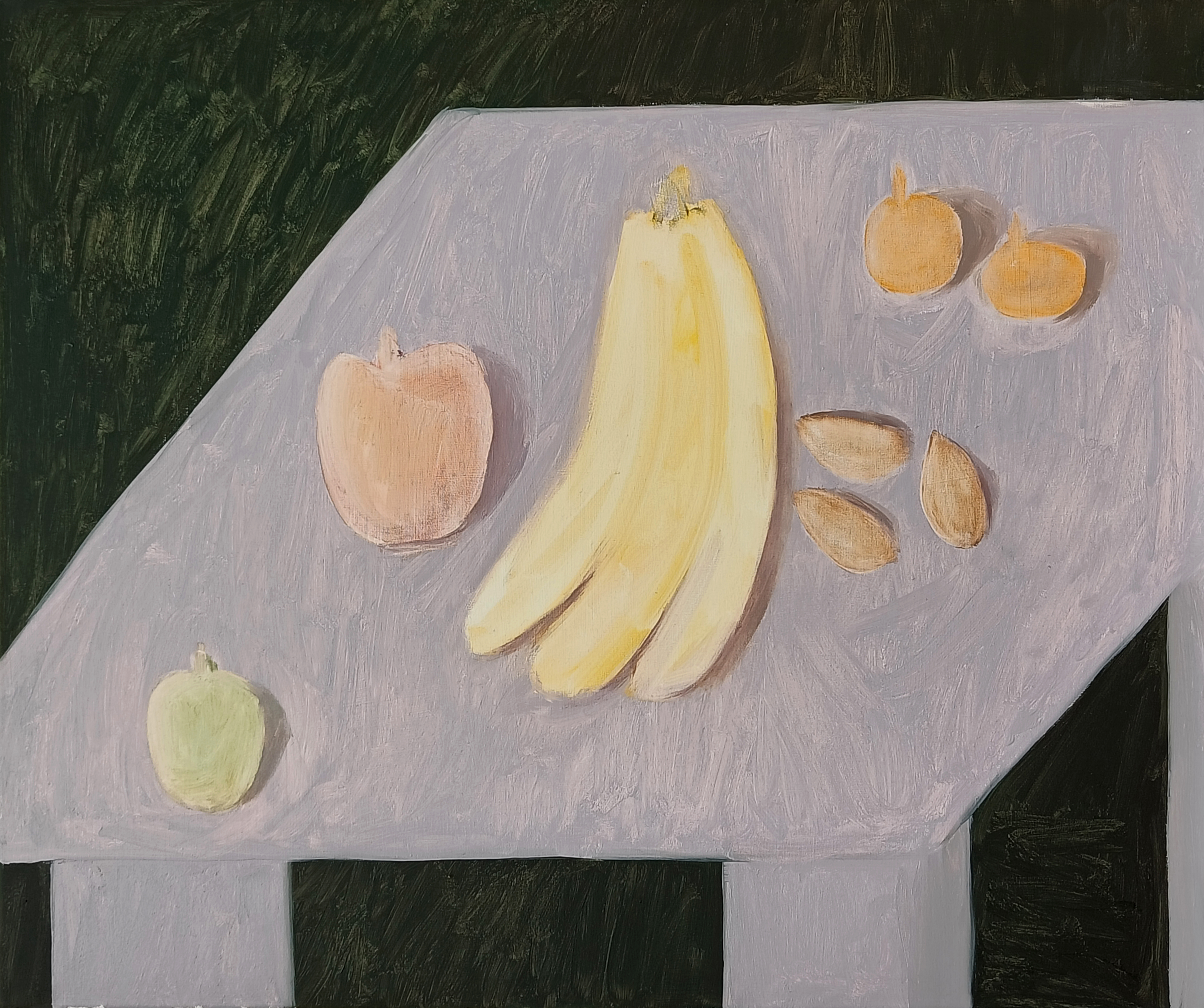 I think so. In the end, it’s a space where you can create whatever you want. And that naturally includes the possibility of falsifying anything. For example, I use a lot of symbols, but I don’t include them to refer to specific things. I use water a lot, fruits… But they don’t directly refer to reality. Within my work they have their own symbolism. That comes, in a way, from the idea of play—of creating your own fantasy, your own rules. And I think that’s exactly what painting offers: the fiction that reality doesn’t give you.