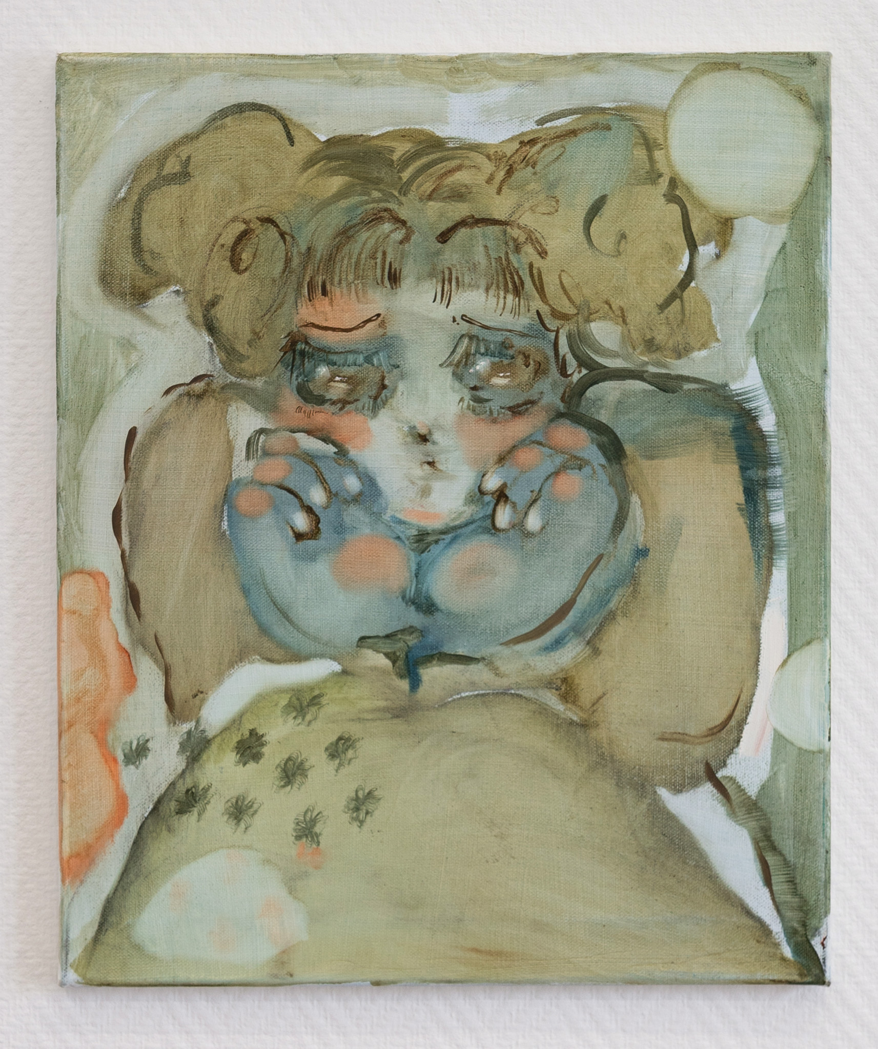 Inside, Iris unfolds the works before my eyes, like someone turning the pages of a diary. The first time I saw her work was in the hands of a common friend who had bought a tiny rectangle of wood decorated with a somewhat schematic face of a sleeping woman, almost a childlike drawing in pastel tones. Since then, the artist has exhibited her work internationally, in cities such as London, Paris, Madrid, Barcelona, and Palma de Mallorca. Now, back in Barcelona, the artist rolls one cigarette after another, enigmatic and tattooed, smoking while we talk about childhood and sexuality, about walks and daydreams. Also about fantasy and children’s literature, diaries and memory, and about that slightly naïve quality in her painting that, according to her, allows her to remain somewhat ambiguous: not tied to a fixed or easy message, nor married to anything, or anyone.