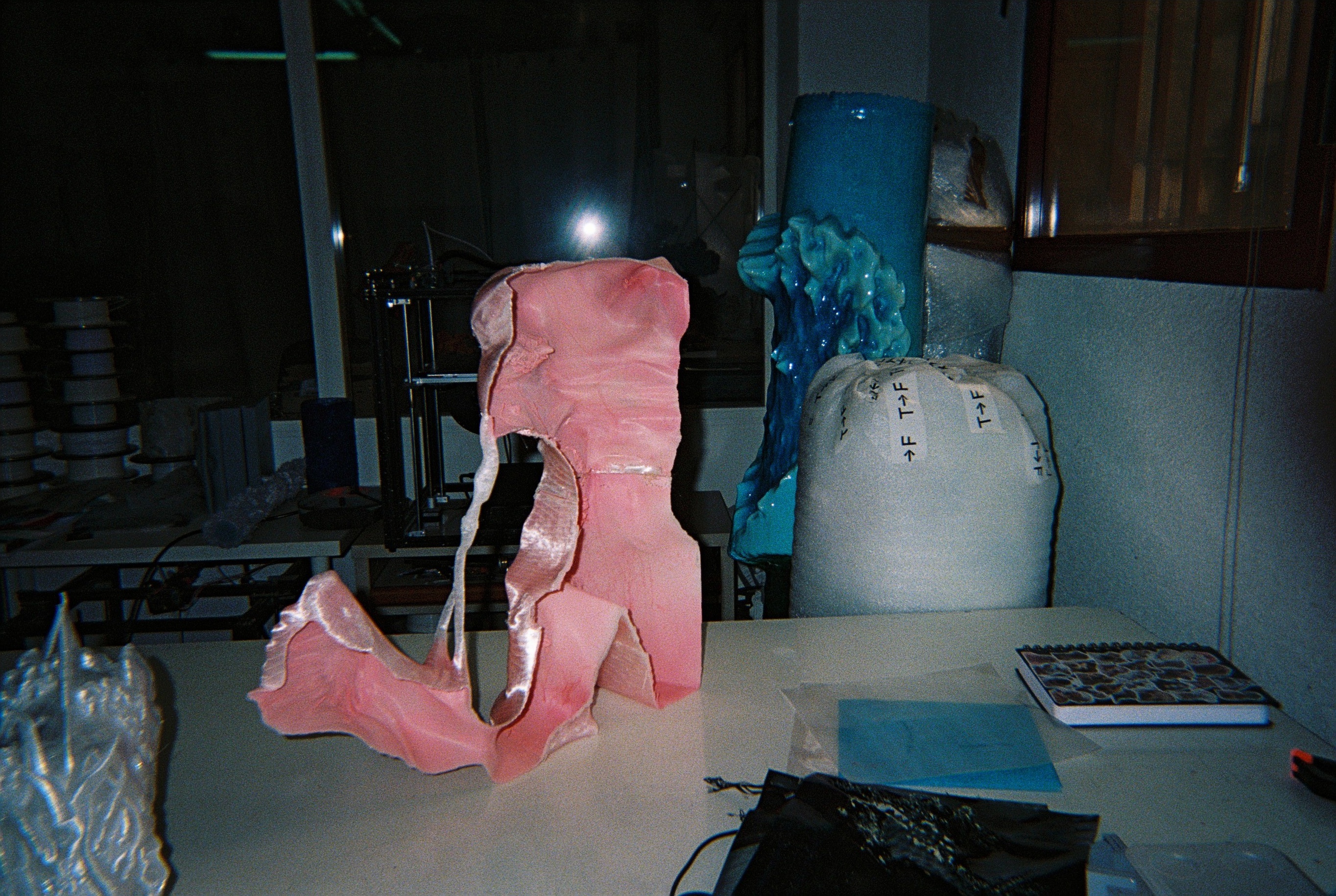 Yes, although I don’t like to force errors; I prefer them to appear genuinely. For example, when I print a piece and the material jams, and tears or threads start appearing on the surface. I’m interested in observing that because it reveals the human, imperfect side behind technologies that seem magical and flawless. The same happens in processes of image generation or 3D animation: I build elements and observe what happens. When something interests me, I keep it, because it speaks about the process behind the work.