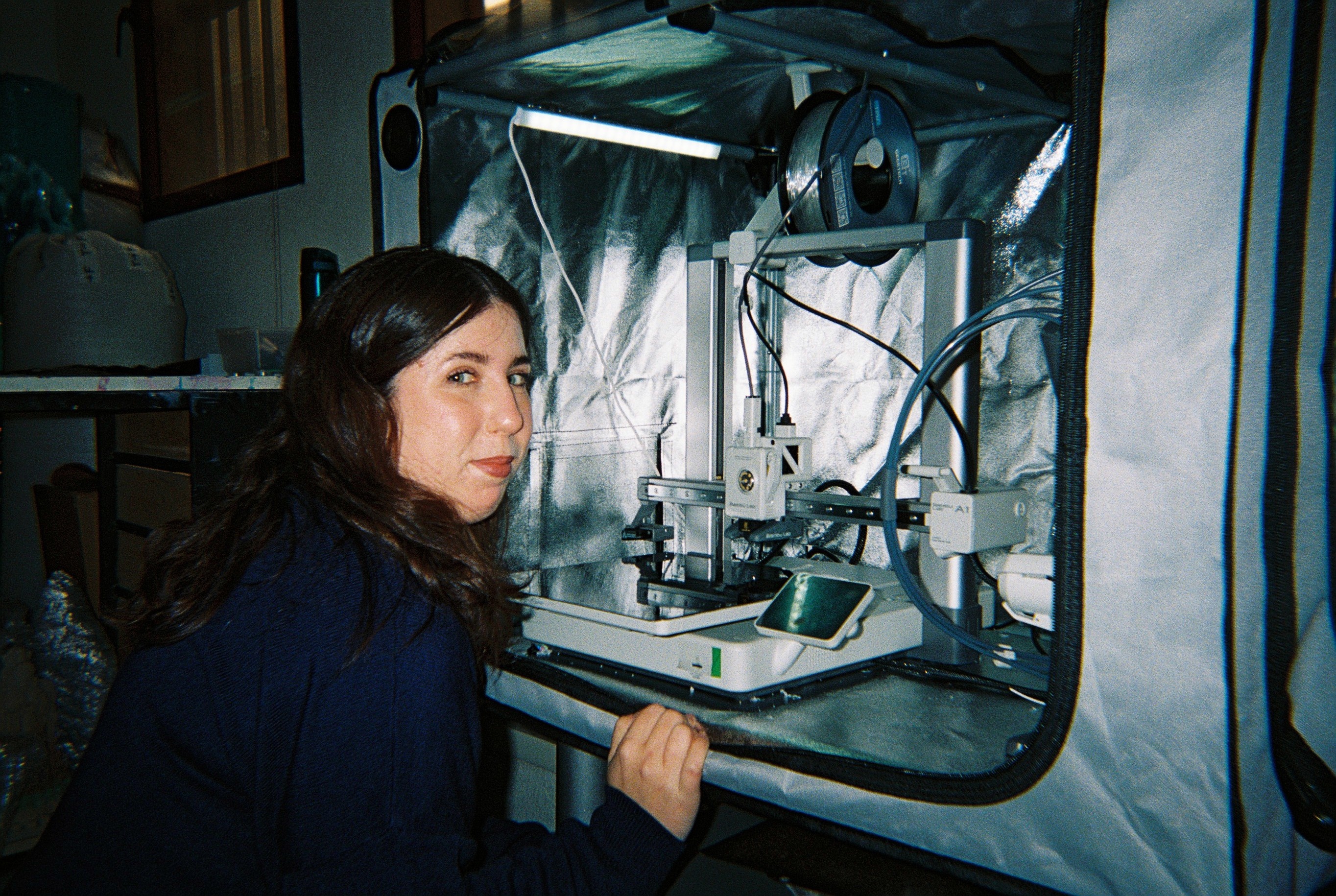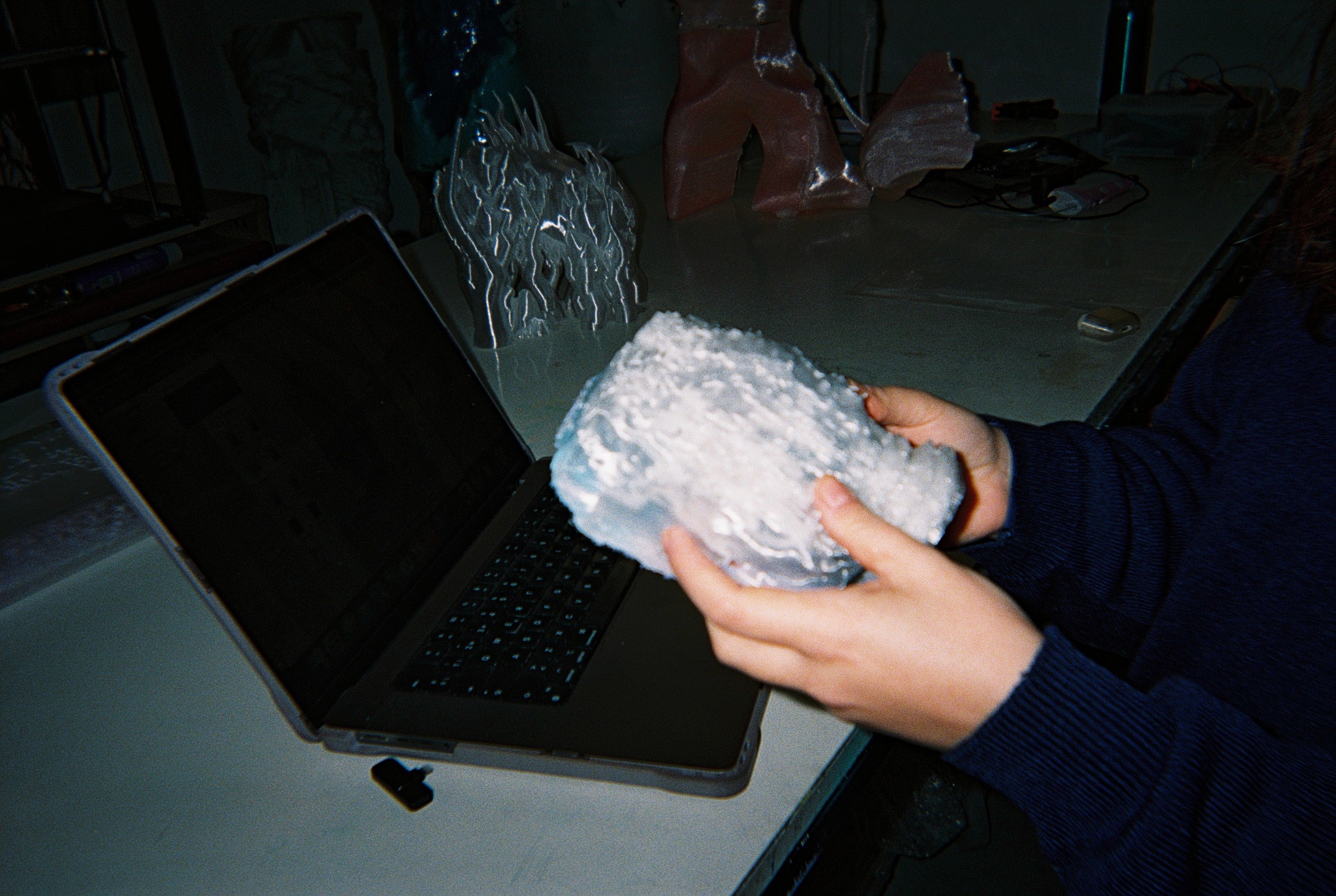 Lola Zoido realized she wanted to be an artist when, at fifteen, she visited Francis Bacon’s studio in Dublin and recognized herself in that gigantic black chaos. A few decades later, entering her own studio in Carabanchel feels just as cool, though for very different reasons. We talk to the sound of a 3D printer (which Lola says she has a truly “personal” relationship with) while the artist tells us about her attraction to glitch aesthetics, to Google Maps landscapes, to the layers of affection and identity that pile up on the other side of our screens, and, basically, to anything that helps humanize the digital.